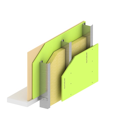 Mevcut gazbeton/tuğla/ bims gibi duvar yüzeyi üzerine şakülünde, hizasında L braketler düşeyde 70 cm arayla olacak şekilde monte edilir. L braketler 0-8 m arasındaki yapılarda 60 cm arayla, 8-20 m arasındaki yapılarda 40 cm aks aralığında döşemeye bağlanmalıdır. L braketlere DC profiller vidalanır. Profillerin arasına projeye göre uygun kalınlık ve yoğunlukta taşyünü levhalar yerleştirilir. Profillerin ön yüzüne içeriden, arka yüzüne iskele ile Outwear vidalanır. İç mekanda Outwear üstüne 1 kat Aypan levha (projedeki ihtiyaca göre Beyaz, Kırmızı, Yeşil ya da More seçilerek) vidalanır. Levha birleşim yerleri uygun derz dolgu malzemesi ile doldurulur. Uygun dış cephe astarı uygulanır. Sistemin dış mekâna bakan yüzüne projedeki detaya göre mantolama yapılır.